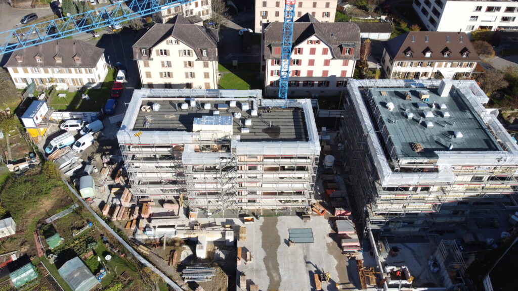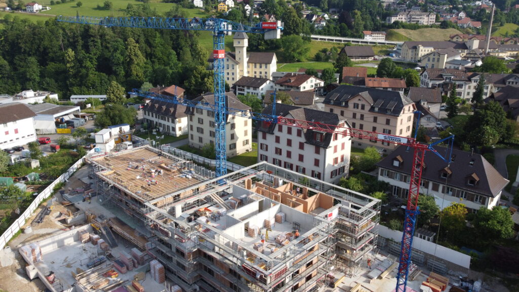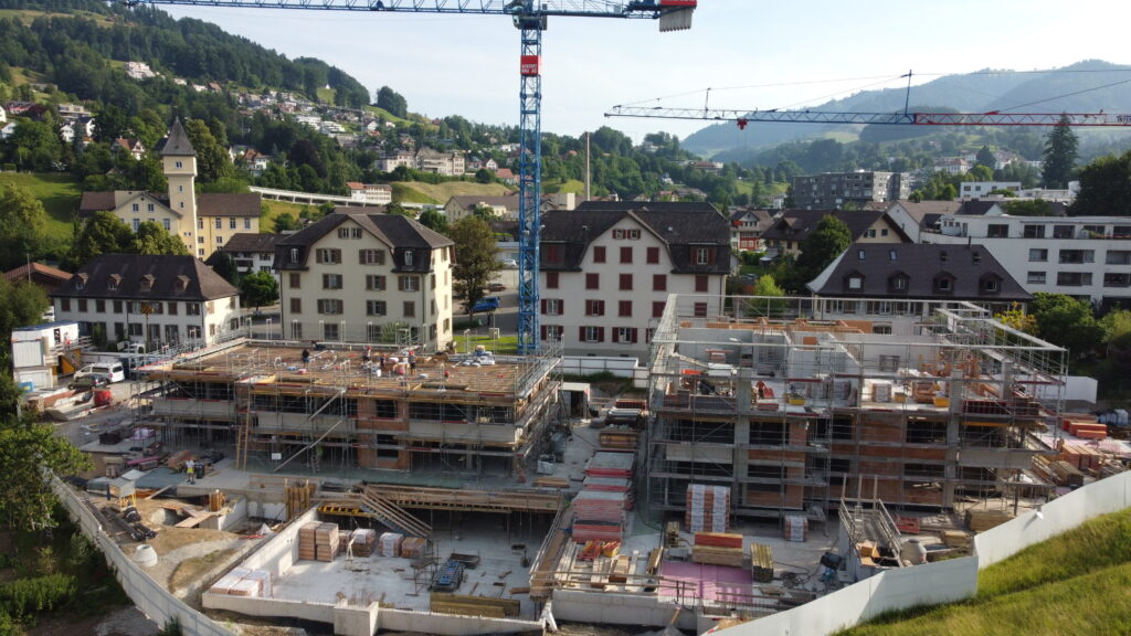 Im Dezember 2024 haben wir mit den Baumeisterarbeiten für zwei moderne Mehrfamilienhäuser begonnen. Die Überbauung entsteht in einem attraktiven Quartier und umfasst eine grosszügige Tiefgarage sowie 27 stilvolle Eigentumswohnungen. Die Fertigstellung ist auf Frühjahr 2026 geplant.